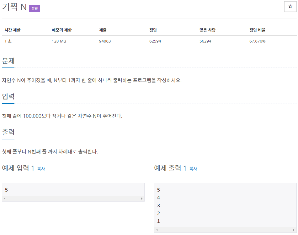 2. 입력받은 N부터 반복문을 통해 N-- 한다.
