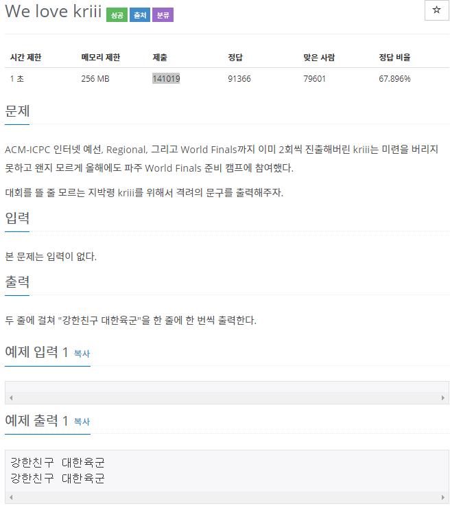 //System.out.print("강한친구 대한육군 \n강한친구 대한육군");